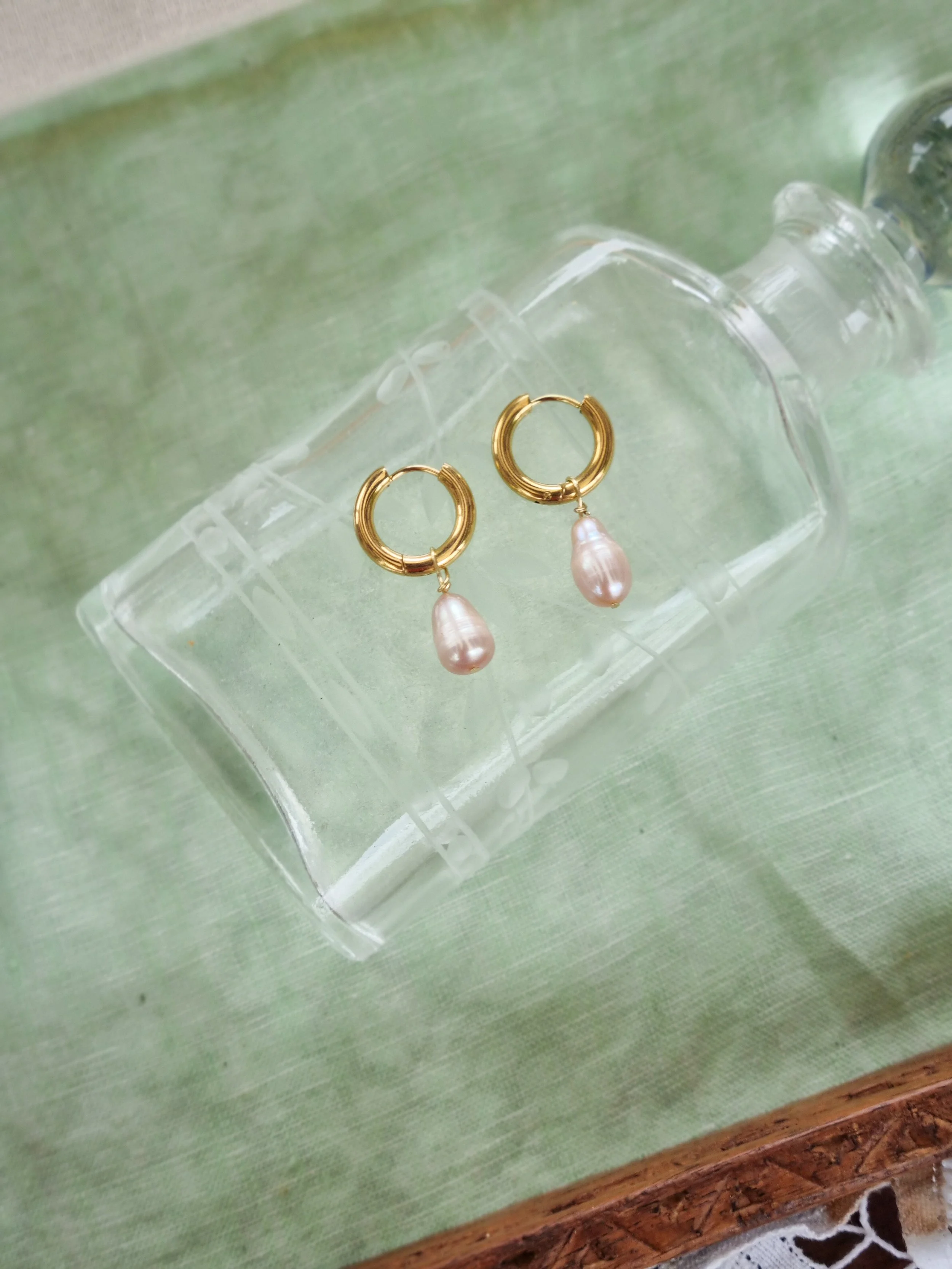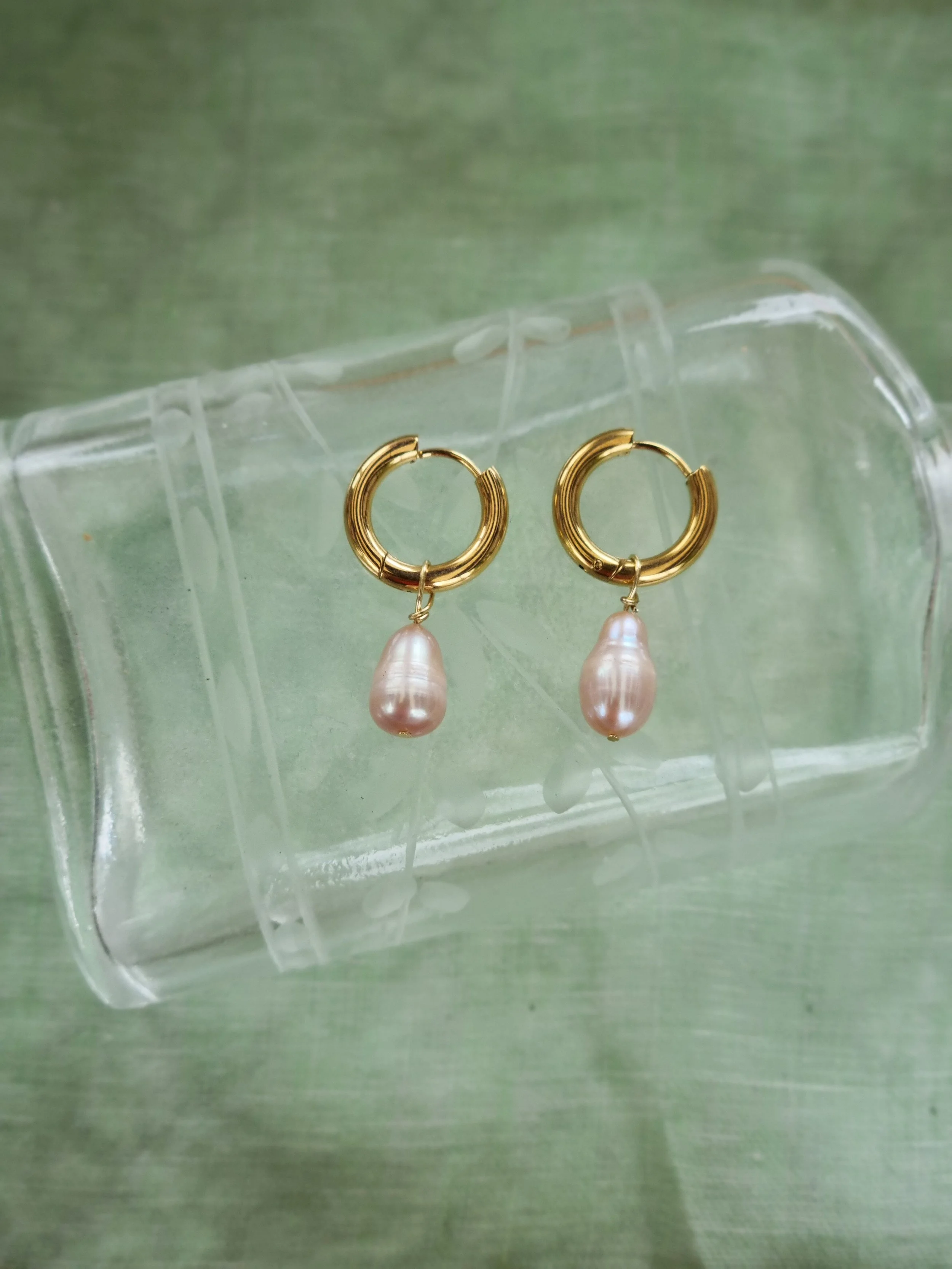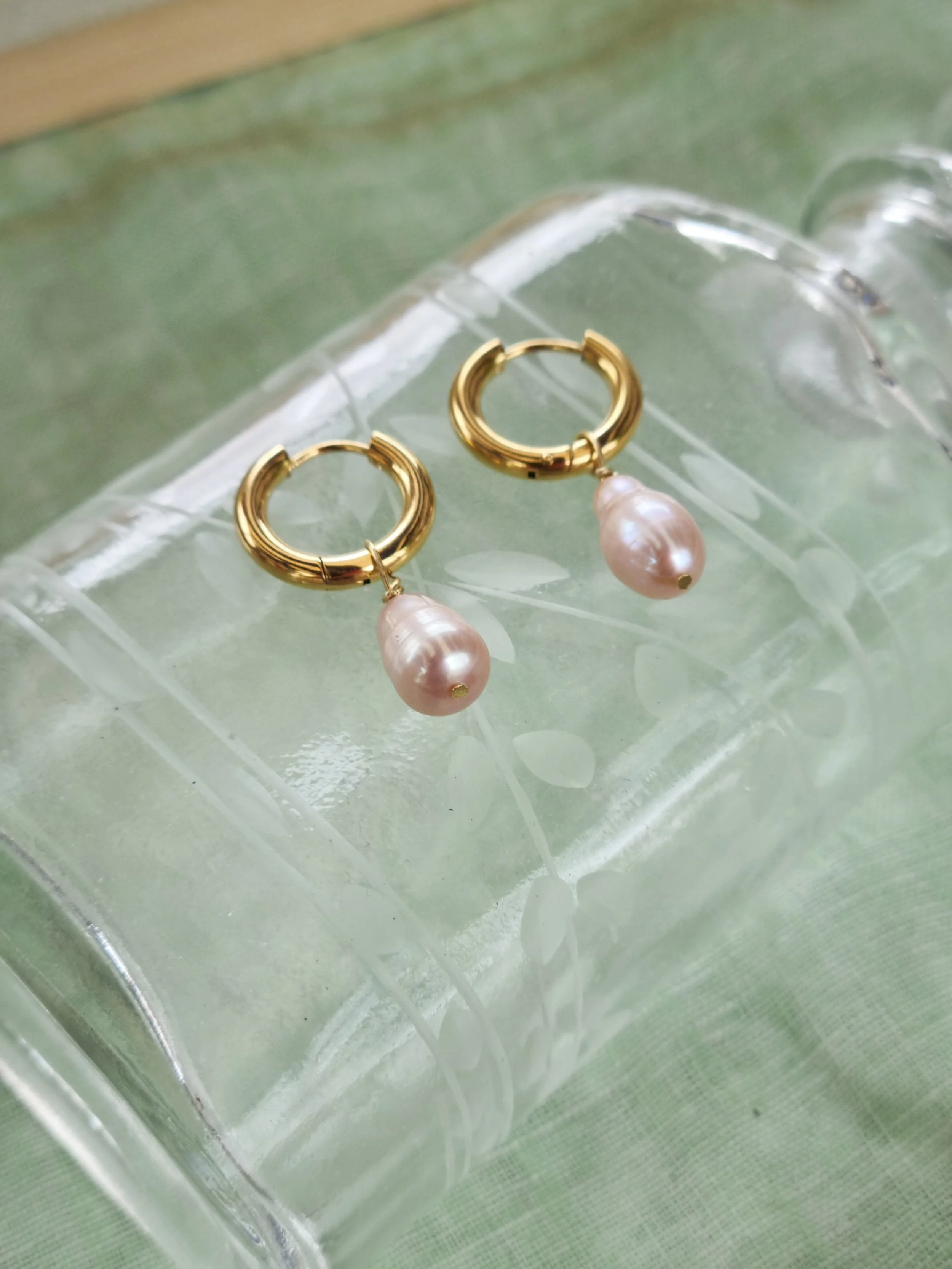 Handmade in my home studio in England. These earrings are made featuring pale pink freshwater pearls that I have handpicked and sourced from my recent trip in Thailand.