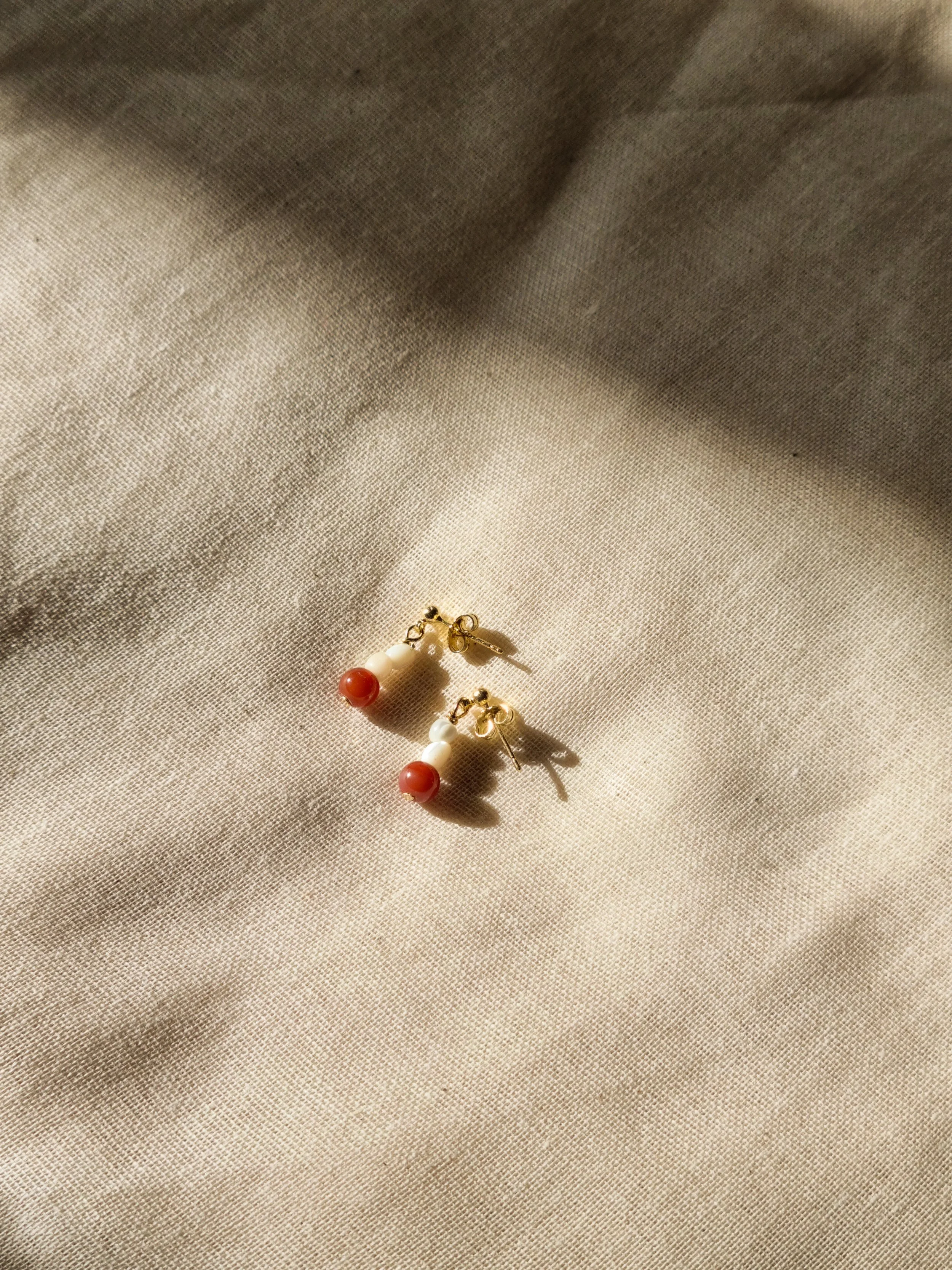 Add a touch of elegance to your look with these dainty drop earrings. Handmade from my home studio in England. Each piece features a soft brown gemstone bead and small mother of pearl beads on a gold plated 925 sterling silver earrings posts, creating a warm and natural style. Lightweight and easy to wear, they’re perfect for both everyday outfits and special occasions.