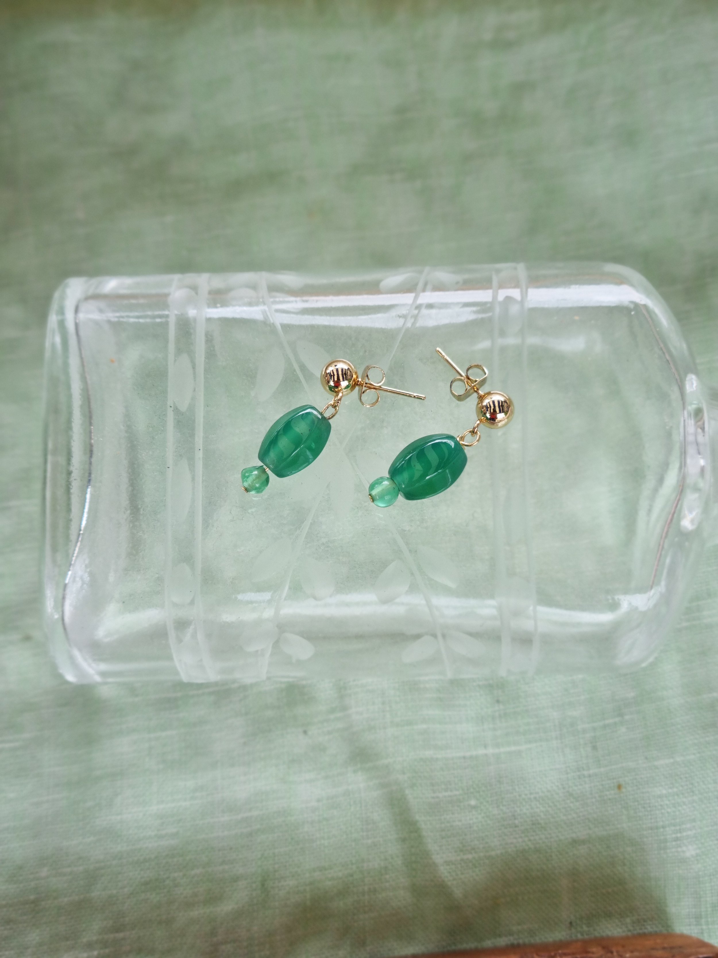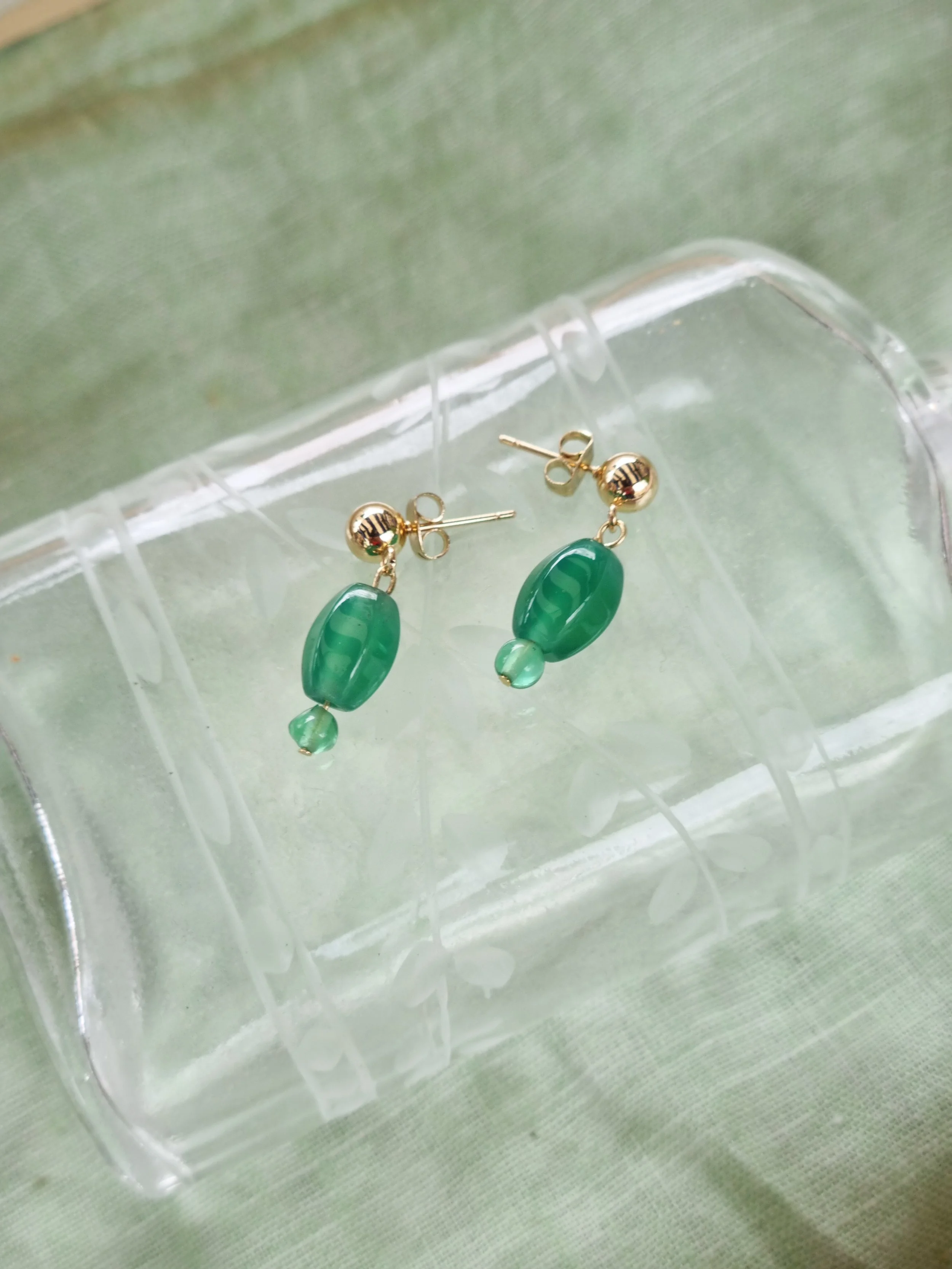 Handmade in my home studio in England. These earrings are made with green jade gemstones that I have handpicked and sourced from my recent trip in Thailand. Also featuring small green circle shape glass beads that I have upcycled from vintage and old beads.